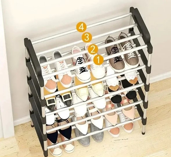 Este modelo está fabricado con acero galvanizado y conectores reforzados que soportan el peso de múltiples pares de zapatos sin ceder. Diseñado para durar, ofrece estabilidad y resistencia incluso con un uso constante.